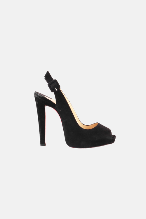 Christian Louboutin Burnu Açık Süet Topuklu Ayakkabı Siyah - 38.5