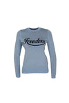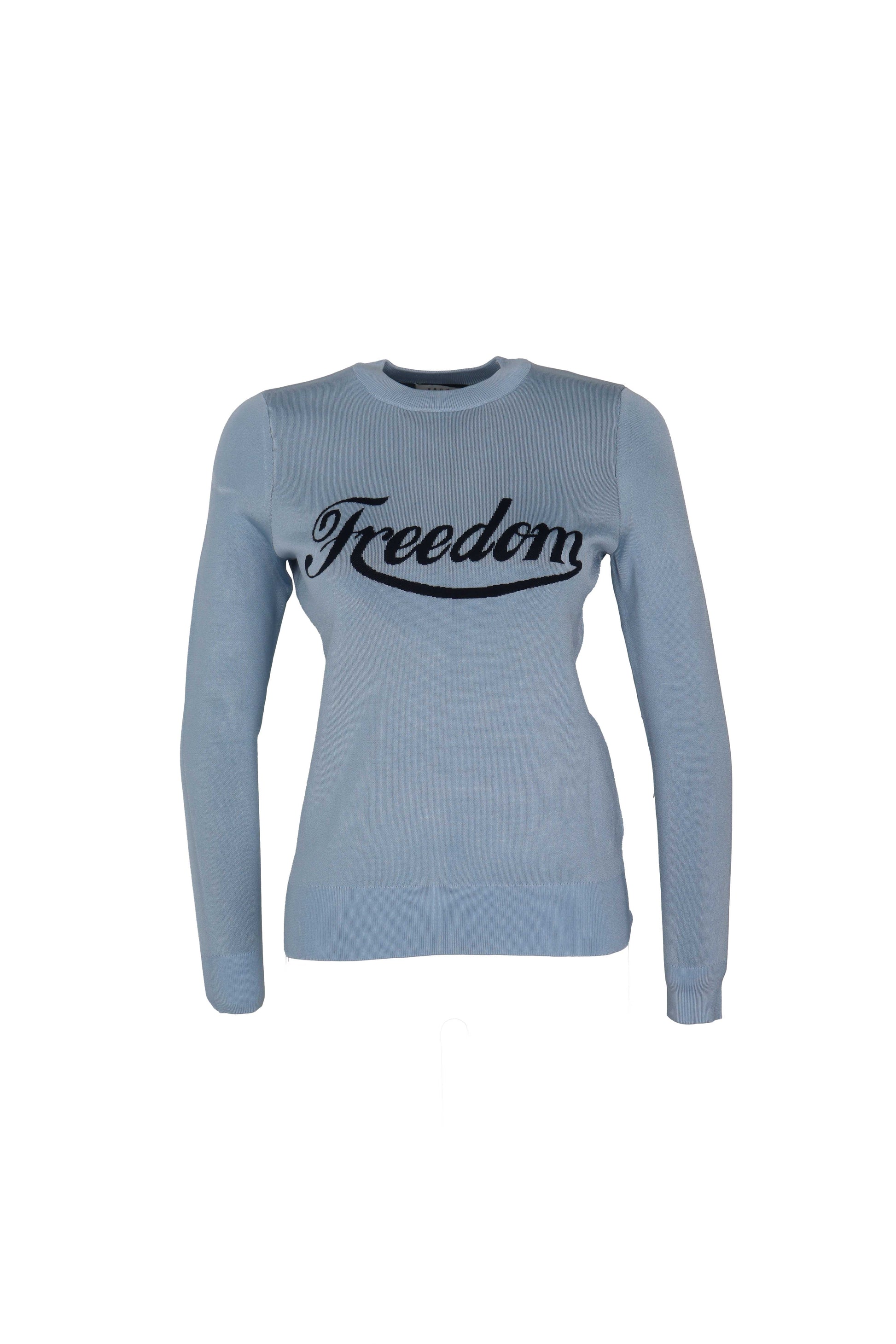 - Editör Notları: Bebe mavisi tonunda, ince dokulu bir triko. Göğüs kısmındaki “Freedom” yazısı, kontrast lacivert işleme formunda tasarlanmış ve parçaya enerjik bir karakter katıyor. Vücuda oturan silueti, yuvarlak yaka detayı ve temiz bitişleriyle hem jean’lerle hem de daha klasik altlarla kolayca eşleşebilen, modern bir basic.