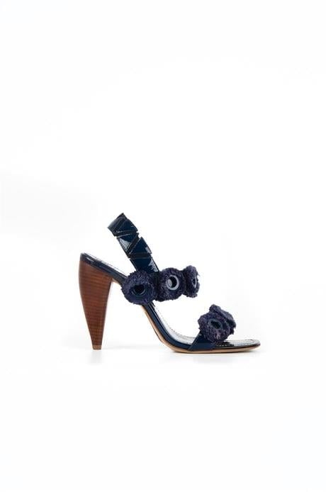 Bu Tory Burch sandalet, markanın feminen ve sofistike tasarım anlayışını yansıtan çiçek aplikeli topuklu sandalet modelidir. Lacivert tonlarındaki dokulu bantlar, el işi görünümlü çiçek detayları ve ahşap görünümlü konik topuğuyla hem zarif hem de karakterli bir duruş sunar. Ayak bileğini saran bant yapısı denge sağlarken, yaz davetlerinden şık akşam kombinlerine kadar rahatlıkla kullanılabilen, dikkat çekici ve rafine bir Tory Burch tasarımıdır.