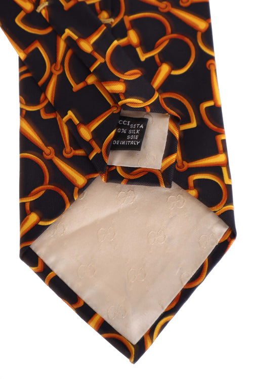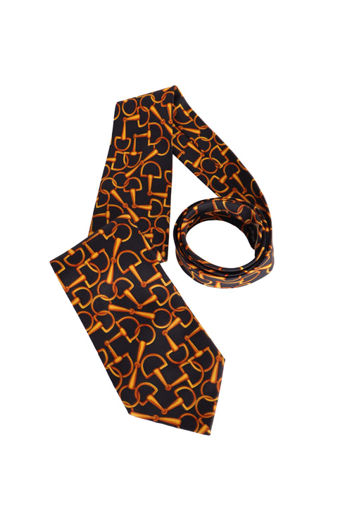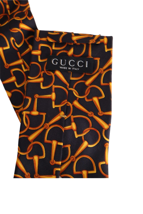 Bu Gucci kravat, markanın köklü binicilik mirasından ilham alan ikonik horsebit (at gemi) motifleriyle tasarlanmış karakterli ve zamansız bir aksesuardır. Siyah zemin üzerine altın tonlarında tekrarlayan desen, klasik Gucci kodlarını güçlü bir şekilde yansıtırken %100 ipek dokusu sayesinde parlak, akıcı ve sofistike bir duruş sunar. Hem iş stilinde hem de özel davet kombinlerinde sade bir takım elbiseye hareket ve prestij katmak için ideal, dikkat çekici ama dengeli bir model.