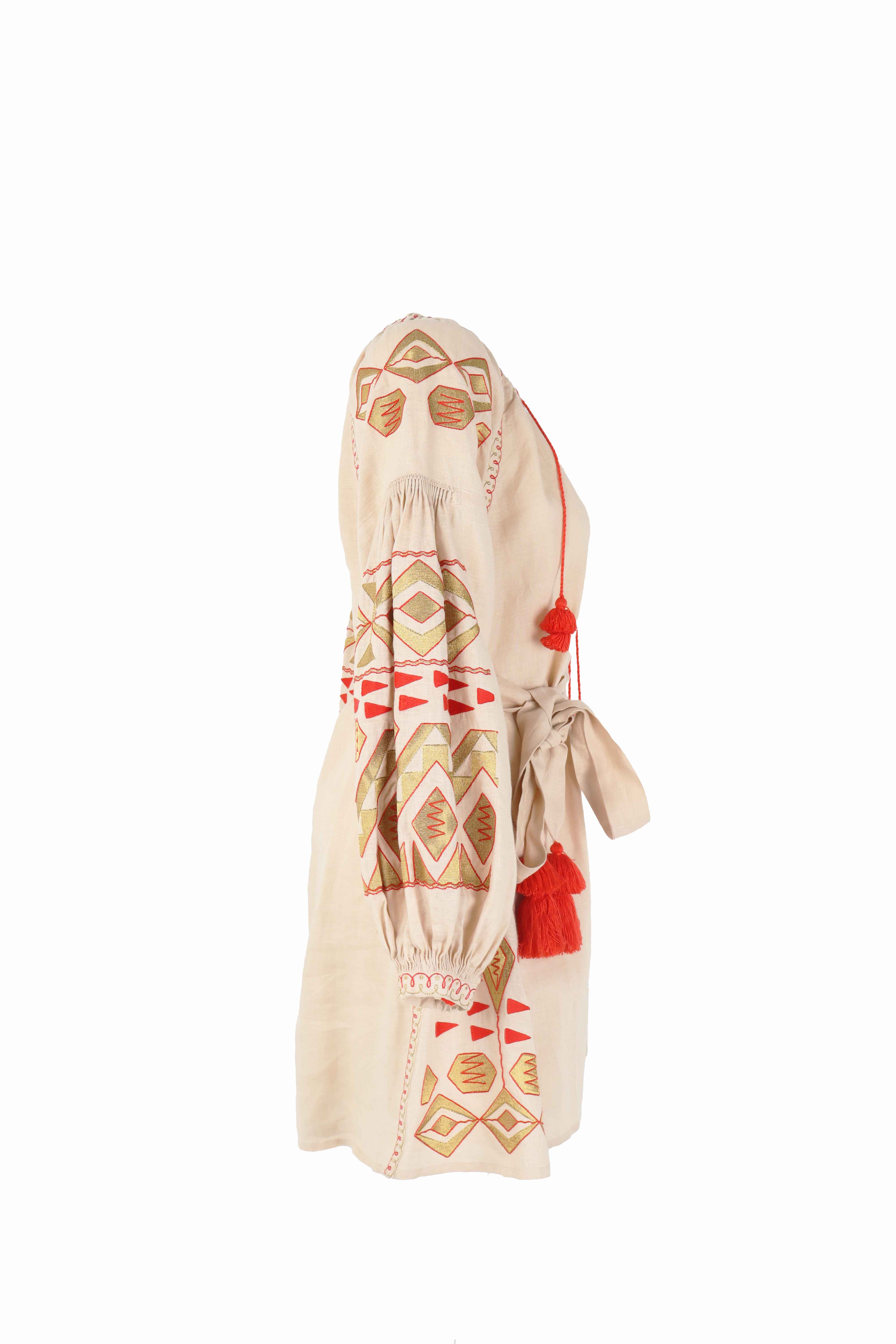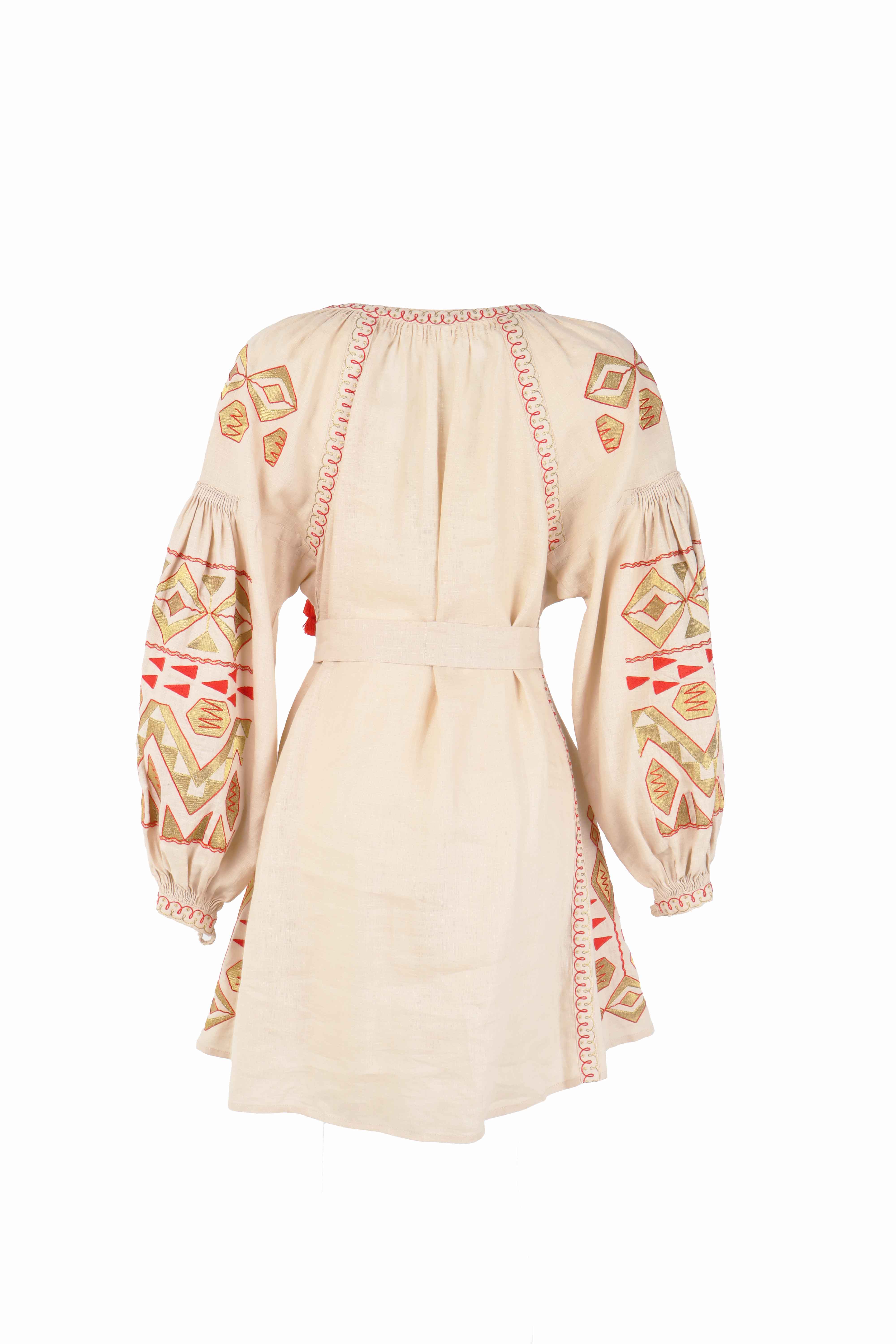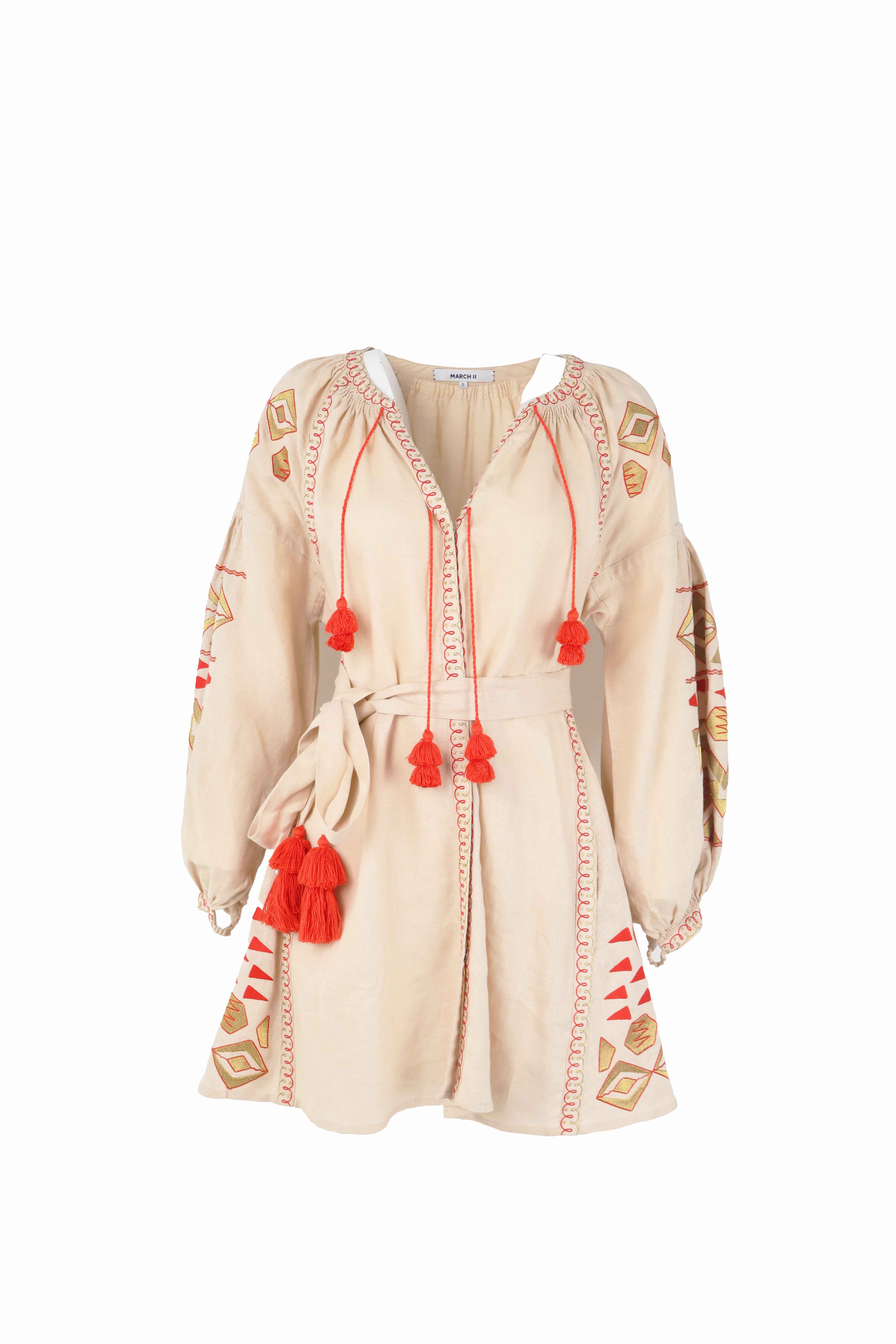 Yaka, kol, etek desenli March II elbise, zamansız bir şıklık sağlar.
