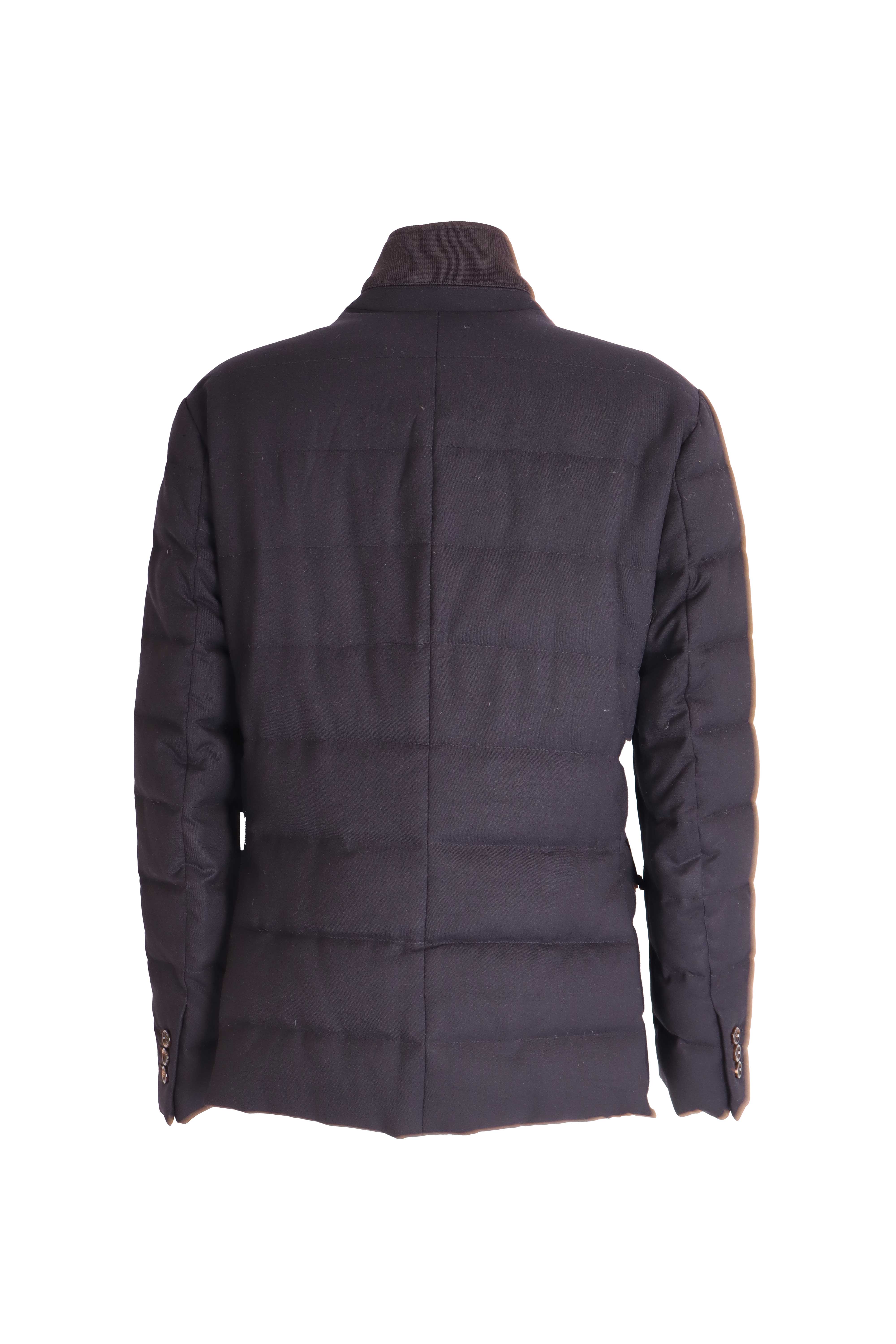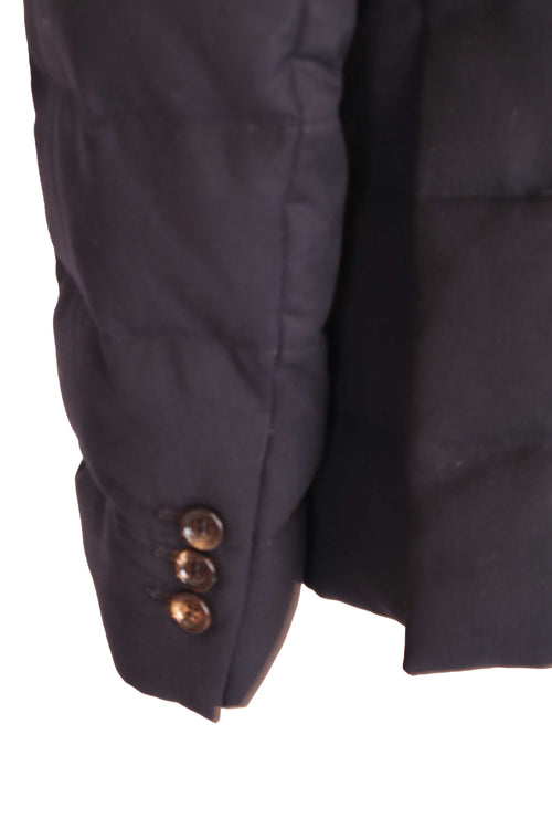 Bu parça Moncler’in şehir şıklığına odaklanan, blazer formunda tasarlanmış şişme mont modellerinden biridir. Lacivert tonlu, yatay kapitone yapısı sayesinde hem sıcak tutar hem de klasik ceket siluetiyle smart-casual kombinlere rahatça uyum sağlar. Hakim yaka detayı, düğmeli ön kapama ve kapaklı cepleriyle ofis stilinden günlük kullanıma kadar geniş bir alanda tercih edilebilen, Moncler’in teknik konforunu zamansız erkek şıklığıyla buluşturan sofistike bir modeldir.