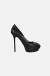 Bu Sergio Rossi topuklu ayakkabı, markanın zamansız ve sofistike çizgisini yansıtan platformlu stiletto pump modelidir. Pürüzsüz siyah deri yüzeyi, yuvarlatılmış burun formu ve yüksek ince topuğuyla bacağı daha uzun ve zarif gösteren güçlü bir siluet sunar. Klasik ama iddialı duruşu sayesinde özel davetler, akşam yemekleri ve şık gece kombinleri için vazgeçilmez bir parça olarak öne çıkar.